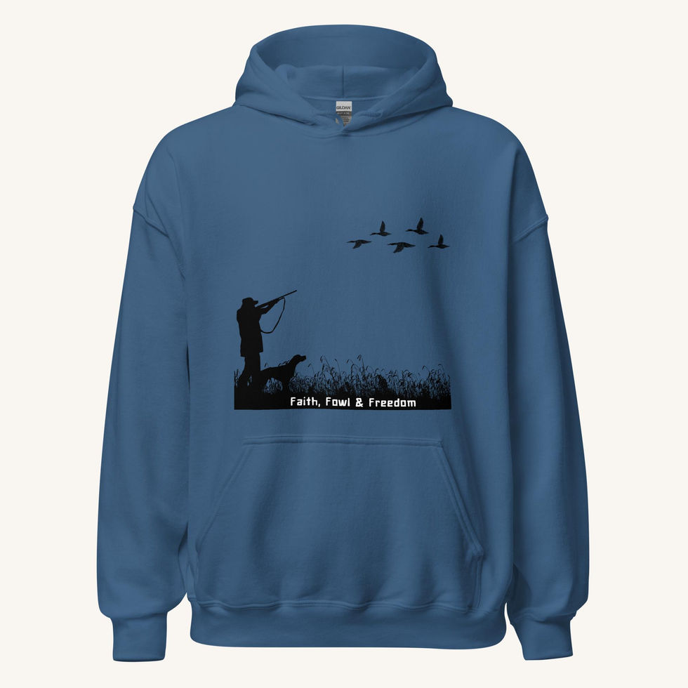 Embrace the hunt, embrace your faith. Add "The Faith, Fowl & Freedom" hoodie to your gear and wear your passion proudly.