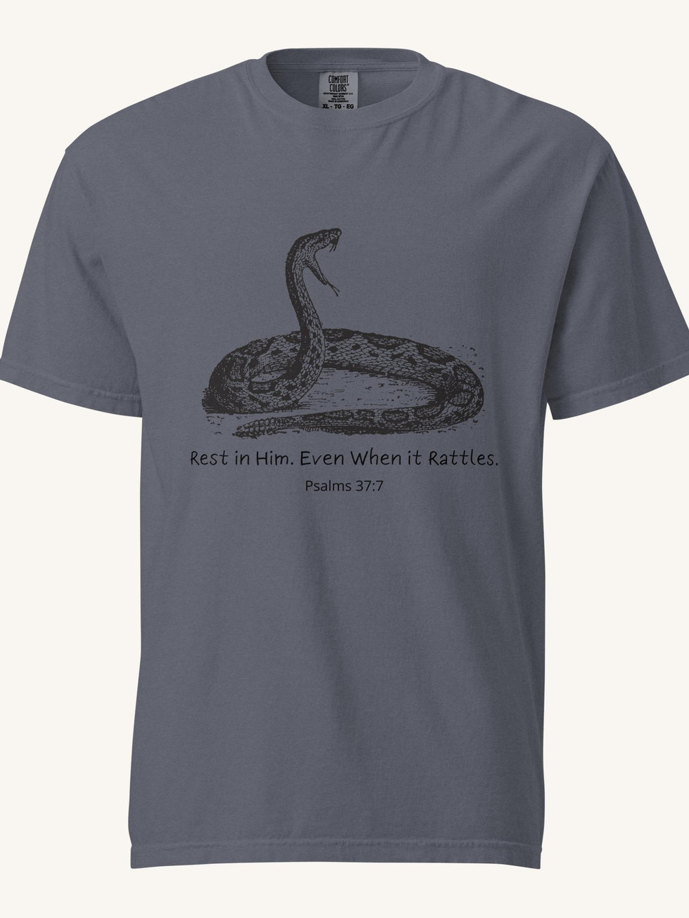 Find the balance between the thrill of the hunt and the peace of the Lord with "The Rattle & Rest" tee. This shirt is for the hunter who knows the adrenaline of rattling in a buck is best followed by the rest found in God's creation.
